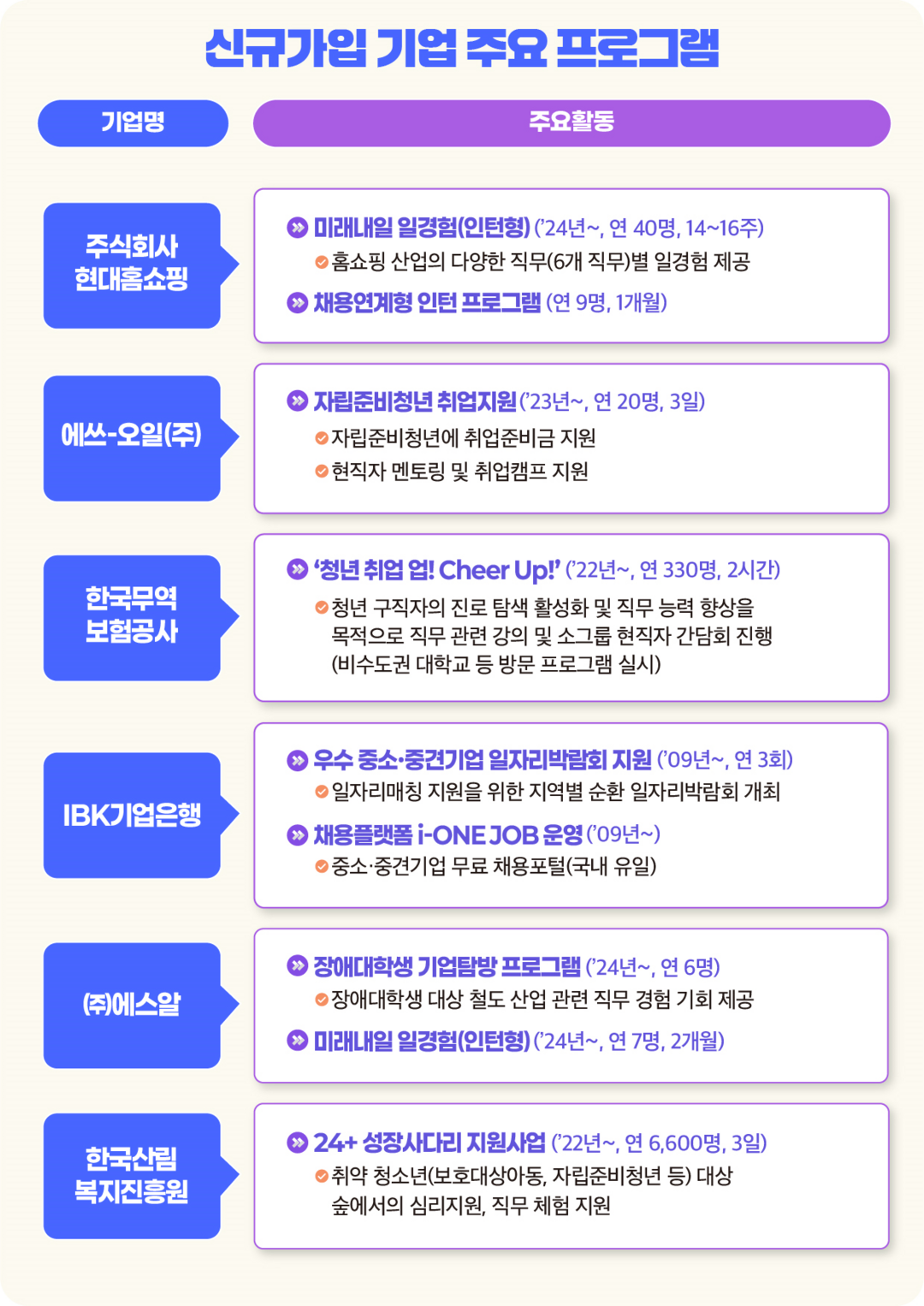 행사에는 LG유플러스, GS리테일, 셀트리온, LS, 컴투스, 현대홈쇼핑, 에쓰오일, 한국무역보험공사, IBK기업은행, 에스알(SR), 한국산림복지진흥원 등 11개 신규기업이 참여했다.