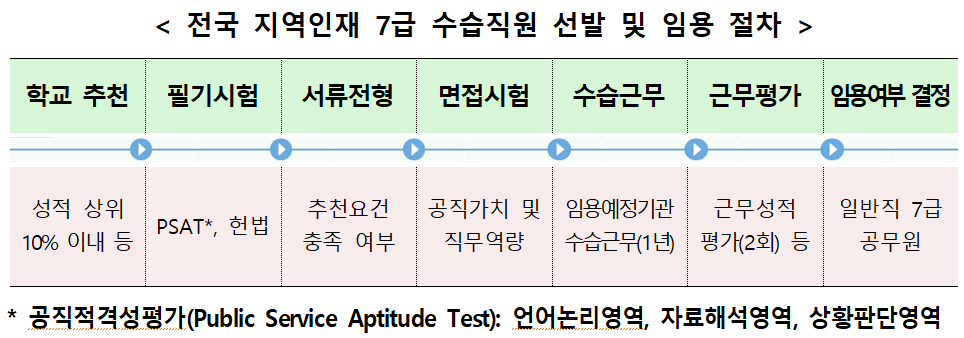 내년 상반기 중 공직 적응과 직무능력 향상을 위한 기본교육을 이수한 후, 중앙행정기관에서 1년간 수습 근무를 거쳐 임용 여부 심사 결과에 따라 일반직 7급 공무원으로 임용될 예정이다.