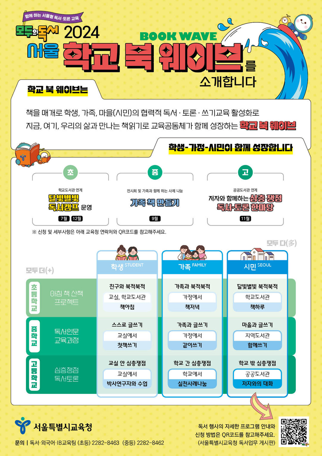 서울시교육청(교육감 조희연)은 8일 디지털 시대에 학생들의 독서 활동을 강화하고 문해력을 향상시키기 위해 ‘북웨이브(BookWave)’라는 새로운 독서 캠페인을 시작한다고 밝혔다.