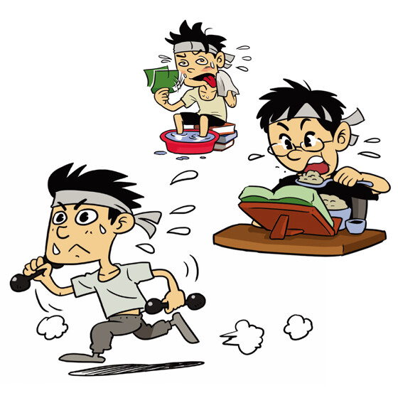 책상 앞에서 책과 씨름하는 수험생들에게 가벼운 스트레칭은 오히려 긴장을 완화하고, 집중력을 높여줄 수 있다. 또 무더위로 인한 체력을 보충하기 위하여 건강식을 챙겨먹는 것도 좋은 방법 중 하나다. 단, 건강식의 경우 너무 과하게 먹어서는 안 되며, 시험 직전에는 피하는 것이 좋다.