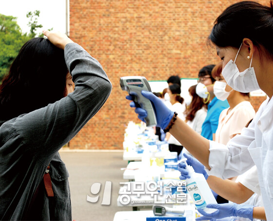 메르스(중동호흡기증후군) 여파로 시험 시행 여부를 놓고 찬반 논란에 휩싸였던 2015년도 서울시 지방공무원시험이 우여곡절 끝에 지난 13일 실시됐다. 서울시인재개발원은 각 시험장마다 인력을 배치, 시험 응시생들의 체온과 손 소독에 각별한 주의를 기울이는 모습이었다.