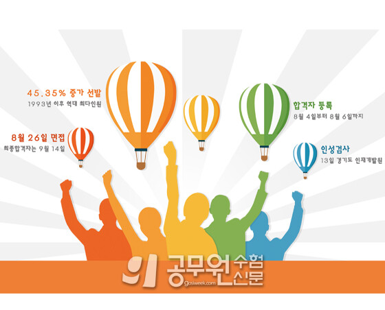메르스 대란 속에서도 수험생들의 공무원을 향한 열정은 1차 합격이라는 결실로 이어졌다. 금년도 지방직 9급 공무원 시험 필기합격자 발표가 이어지고 있는 가운데 지난 3일에는 2015년 제2회 경기도 지방공무원 공개채용 필기시험 합격자가 발표됐다. 경기도 인사위원회는 지난 6월 27일 치러진 필기시험 결과 3,772명을 합격자로 확정지었다고 밝혔다. 선발예정인원에서 45.35% 증가한 인원을 선발한 셈이다. 경기도 공무원 시험은 국가직 공무원이나 서울시 공무원 시험에 버금가는 채용인원으로 공무원 수험가에서 항상 인기있는 시험이다. 당초 경기도는 1993년 이후 역대 최다인원을 선발한다고 발표했으나 이후 286명을 추가로 증원한다고 밝히면서 모집인원이 2,309명에서 2,595명으로 늘었다. 이에 수험생들은 경기도 시험에 합격할 수 있는 절호의 기회로 여겼다.
