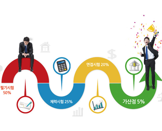 이와 같은 최종합격자 선발은 필기시험점수 50%와 체력시험점수 25%, 면접시험점수 20%, 가산점 5%를 합산하여 고득점자 순으로 결정한다. 여기서 가산점은 5%에 불과하지만, 최종합격을 판가름하는 데 있어 결정적인 요소가 될 수 있다. 가산점 이외의 합산점수가 비등하다면 가산점 1점 차이에 합격, 불합격이 갈릴 수 있기 때문이다. 따라서 수험생들은 될 수 있는 한 가산점 5점을 모두 취득해 놓는 것이 최종합격에 좀 더 유리하다.