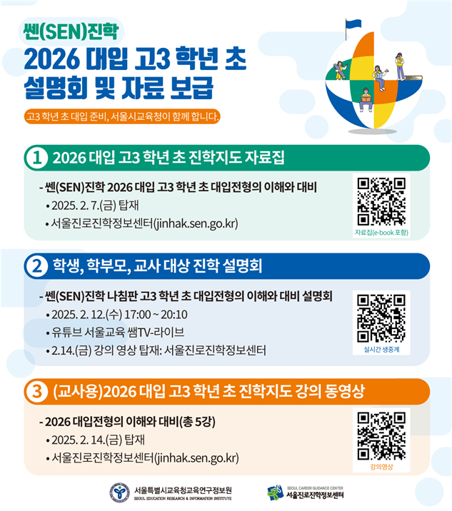 아울러 2025 대입 결과 분석과 2026 대입 특징, 전형별 분석 등을 담은 진학지도 자료집도 함께 배포된다.