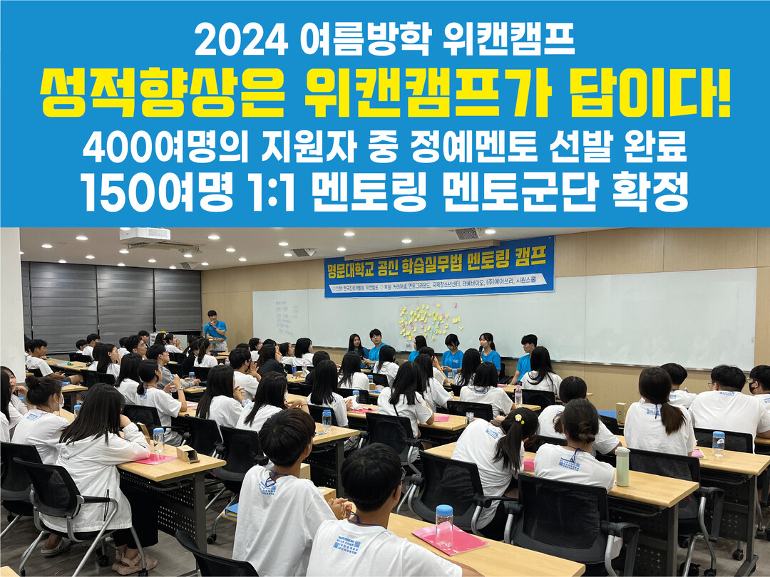 [피앤피뉴스=마성배 기자] 서울대 공신과 함께하는 멘토링 수업으로 화제를 몰고 있는 ‘위캔캠프’가 2024 여름방학 시즌 참가자를 전격 모집한다.