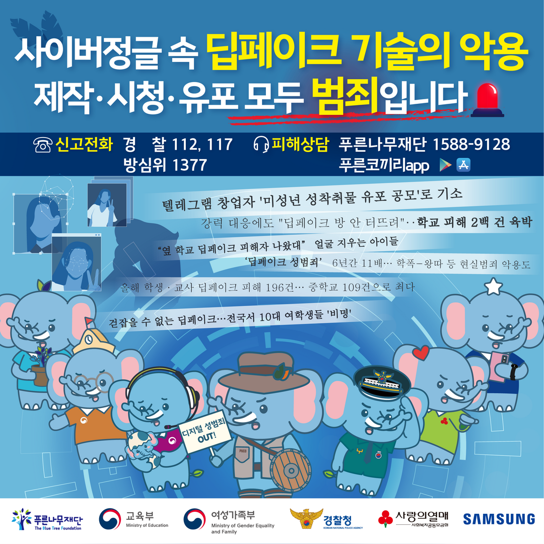 푸른나무재단은 이러한 피해를 겪는 청소년들을 돕기 위해 경찰 신고와 플랫폼 신고, 유포 방지 기술 지원 등 다양한 방식으로 피해자 지원에 나서고 있다. 재단은 학교전담경찰관(SPO)과 협력해 피해 신고 절차를 지원하고, 플랫폼별 신고 가이드라인에 맞춰 딥페이크 콘텐츠를 삭제하는 데도 도움을 준다. 또한 IT 기업과의 연계를 통해 유포된 콘텐츠가 확대 재생산되지 않도록 기술적 지원을 제공한다.