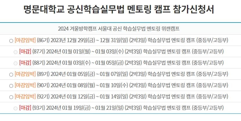 [피앤피뉴스=마성배 기자] 겨울방학 최고의 캠프로 손꼽히는 서울대캠프 위캔캠프가 서울대 공신들이 1:1 맞춤 멘토링을 제공한다는 소식에 전 기수 마감이 임박한 것으로 알려졌다.