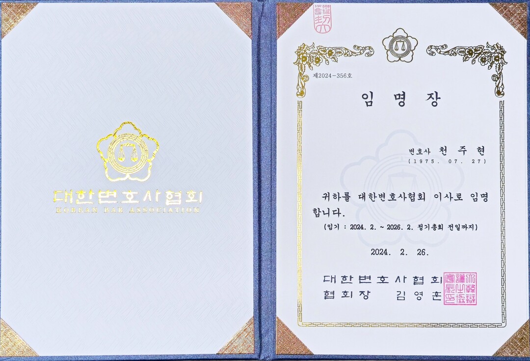 천주현 변호사 대한변호사협회 이사 임명