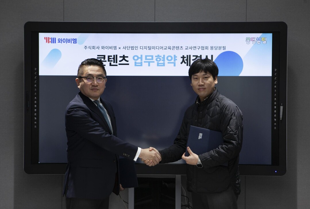 [피앤피뉴스=마성배 기자] 주식회사 와이비엠(이하, 와이비엠)과 디지털미디어교육콘텐츠 교사연구협회 몽당분필(이하, 몽당분필)이 2024년 1월 10일 YBM 본사에서 전략적 MOU를 체결했다.