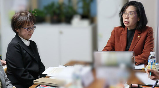 <김현숙 여성가족부 장관이 11월 29일 서울시 소재 스토킹피해자 지원 시범사업 운영기관을 방문해 사업 운영 현황을 보고받고 현장의 의견을 청취하고 있다. 사진=여성가족부>