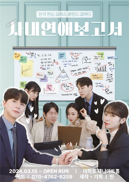 관객들의 열띤 반응을 등에 업고 오픈런 형식으로 공연 중인 연극 ‘사내연애보고서’는 인터파크, 네이버예약, 솜씨당 등 주요 예매처에서 예매 가능하며, 공연은 대학로 제나아트홀에서 상시 진행된다.