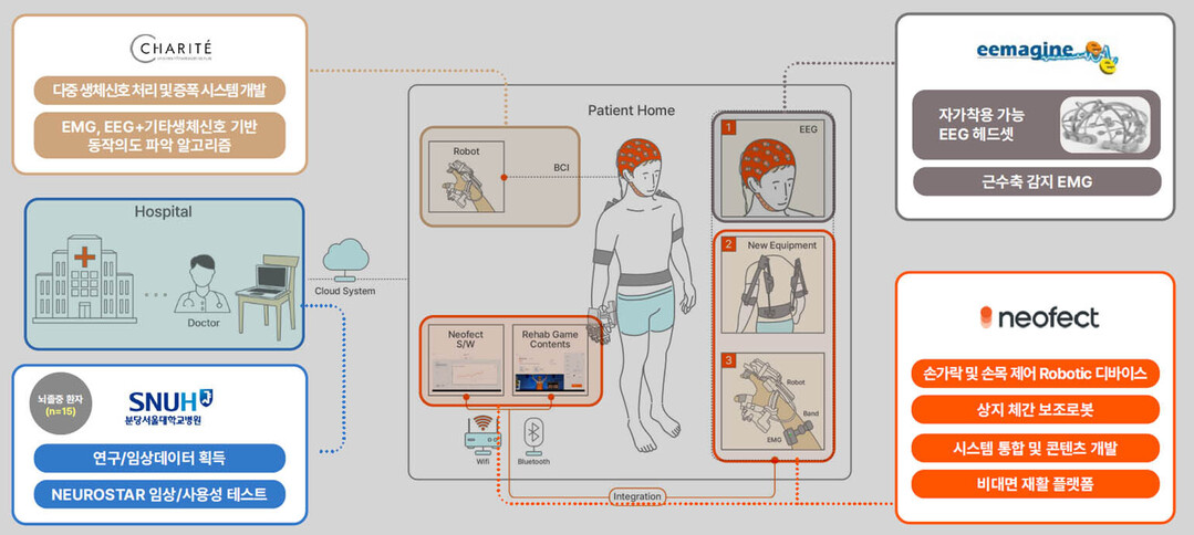 컨소시엄에는 한국의 네오펙트와 분당서울대병원(재활의학과 백남종 교수 연구팀), 독일의 베를린샤리테대학병원, 이매진 등 총 4개 기관이 참여한다.
