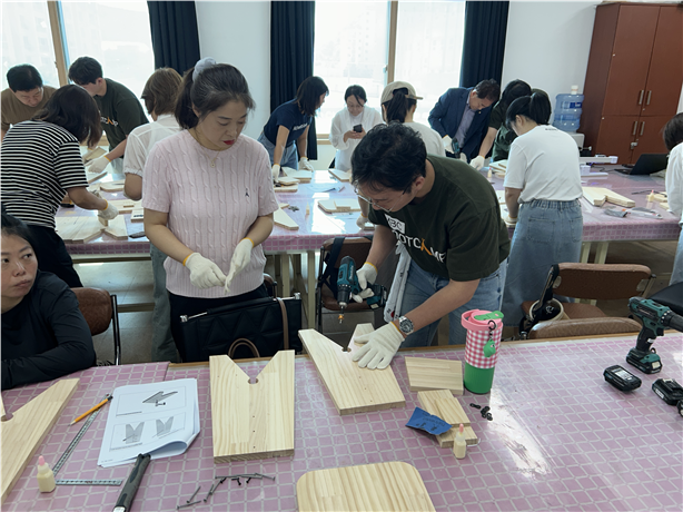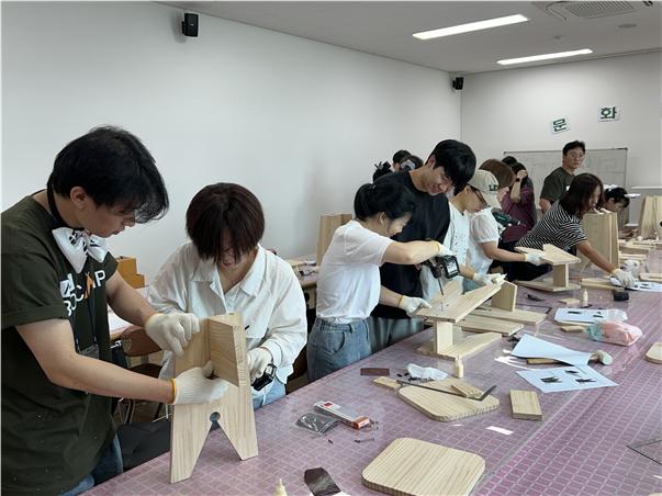 성인 주민을 대상으로 한 사각 라운드 스툴 제작 체험에서는 미송 집성목을 활용해 스툴을 직접 제작했다. 참가자들은 목재 샌딩 작업, 조립, 바니쉬 도포 과정을 거쳐 자신만의 스툴을 완성하며 성취감을 느꼈다.