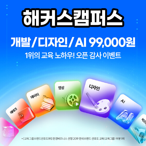 해커스캠퍼스는 런칭 이벤트로 오는 9월 30일까지 기간 한정 특별 할인 이벤트를 진행한다. 이 기간 동안 전 강좌를 1년간 무제한으로 수강할 수 있는 패키지를 99,000원이라는 파격적인 가격에 제공하며(*평생 수강반도 구매 가능), 누구나 부담 없이 양질의 직무 교육을 경험할 수 있도록 했다.