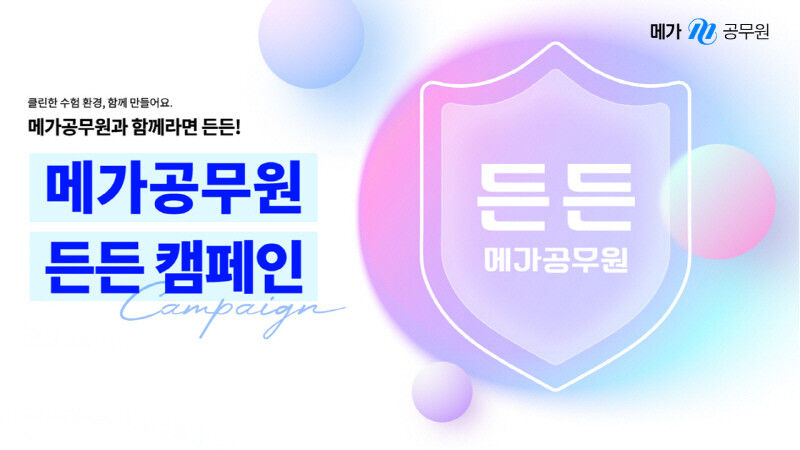 [피앤피뉴스=마성배 기자] 메가스터디교육의 공무원 시험 전문 브랜드 메가공무원이 더 나은 수험 환경을 만들어 나가기 위해 든든 캠페인을 진행한다고 밝혔다.