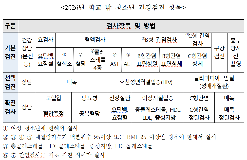 성평등가족부, 학교 밖 청소년 9~18세 전원 무료 건강검진 연중 실시
