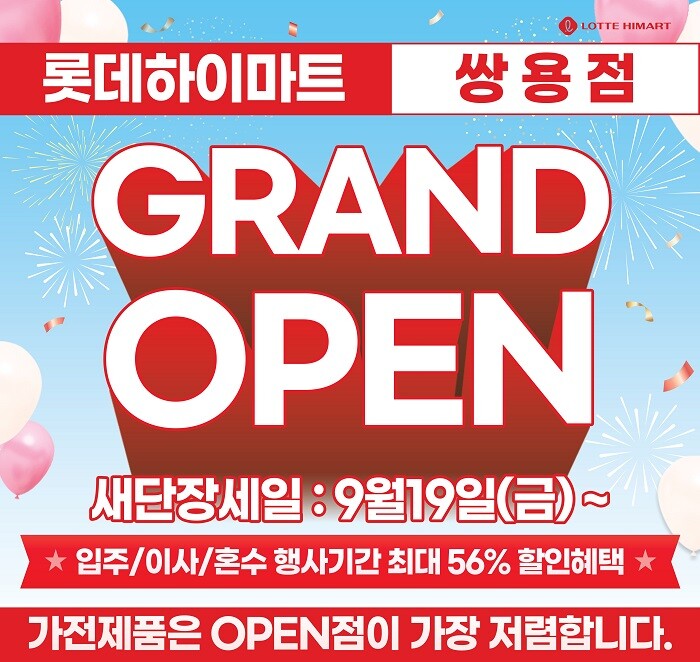 롯데하이마트가 충청권 핵심 상권 중 하나인 쌍용점의 새단장 오픈을 앞두고, 오는 9월 19일부터 오픈 기념 사전 행사를 진행한다고 밝혔다.