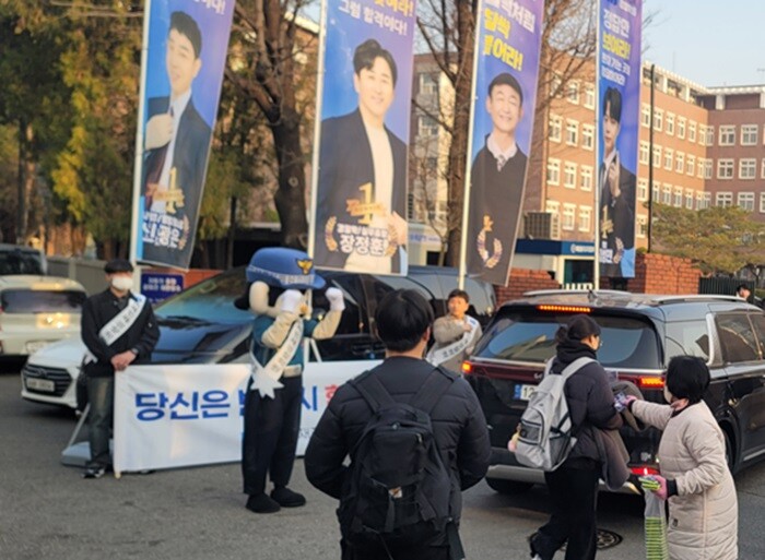 아직은 쌀쌀한 날씨 때문인지 수험생들은 더욱 긴장한 모습으로 서둘러 시험장 안으로 들어서고 있다.
