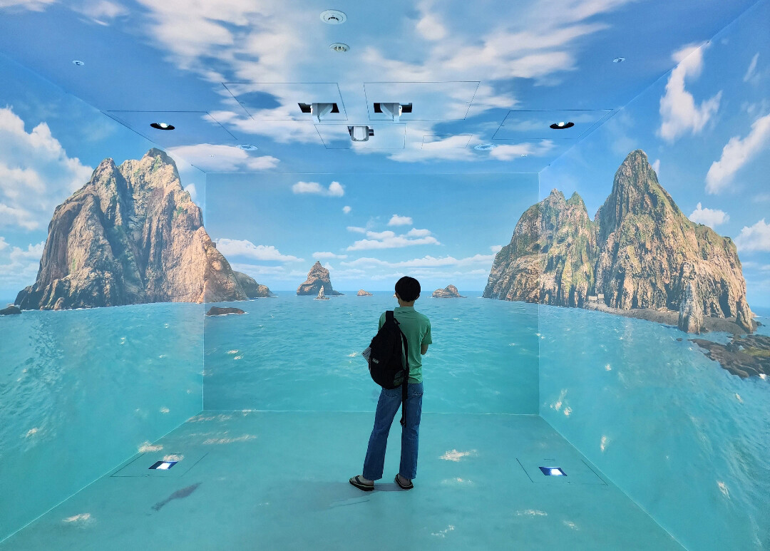 | ▲전시관 내 몰입형 시어터에서 독도를 감상하는 관람객 |
