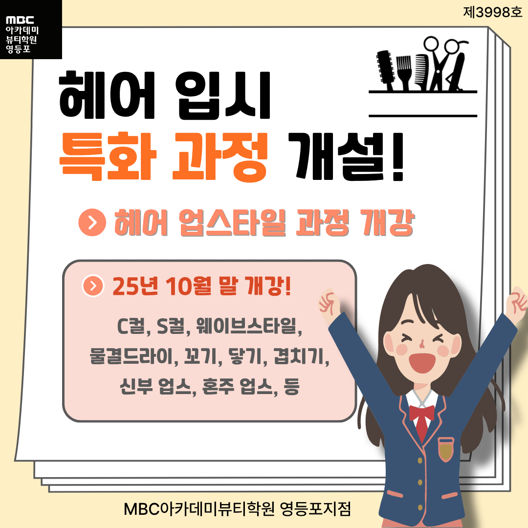 MBC아카데미뷰티학원 영등포지점은 이번 특화 개강을 통해 입시를 준비하는 고등학생 대상의 전문 헤어 교육 프로그램을 강화하고 있다.