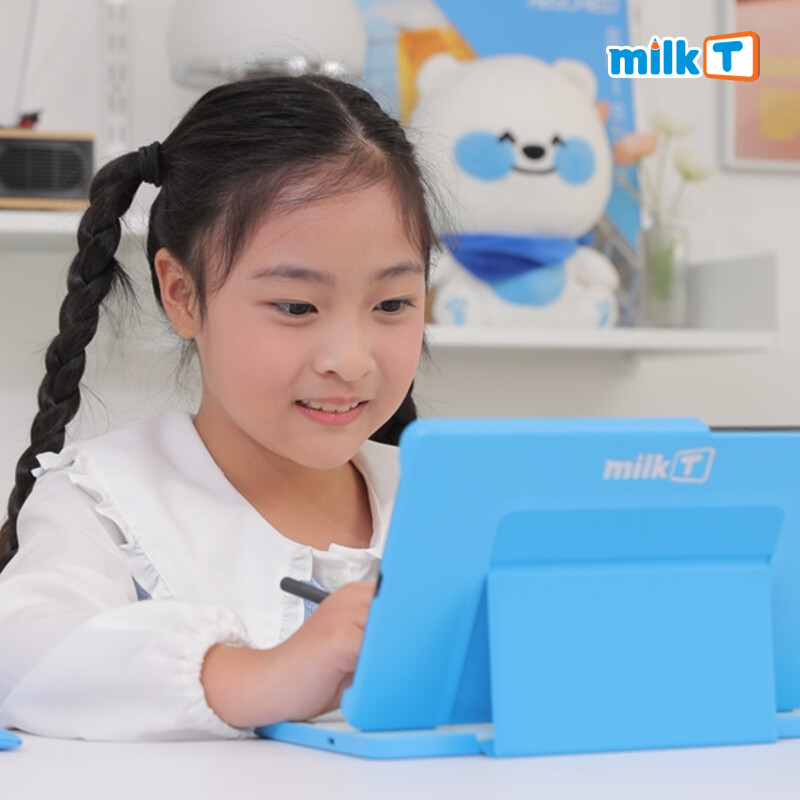 ‘밀크티키즈’는 7살 눈높이에 맞춘, 오직 7세만을 위한 1:1 맞춤 학습 서비스이다. 초등학교 입학 전에 익혀야 할 국어, 수학, 영어를 수준별로 학습할 수 있도록 A, B, C, D 네 가지 코스로 구성된 커리큘럼을 제공한다.