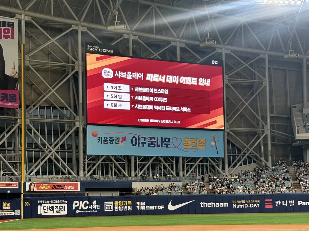 또한 경기장 B·C게이트 및 트레이드존에서는 선착순 5,000명에게 샤브올데이 고척점 전용 10% 할인권이 배포되었고, 경기 중간 진행된 이닝 이벤트를 통해서도 식사권 등 풍성한 경품이 제공되며 관람객의 만족도를 높였다.