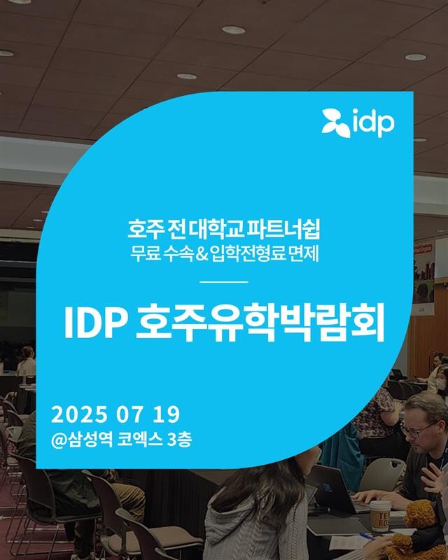 호주 유학을 계획하는 학생과 학부모를 위한 ‘IDP 호주유학박람회’가 오는 7월 19일(토), 서울 삼성동 코엑스에서 열린다. 이번 박람회에서는 호주 전역의 대학 및 전공에 대한 정보를 한 자리에서 확인할 수 있다.