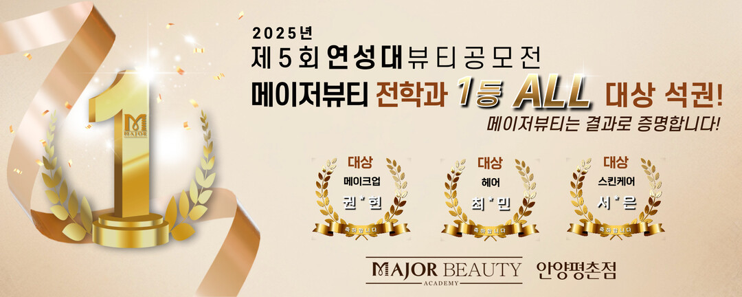미용입시 명문교육기관으로 두터운 신뢰를 받고 있는 안양미용학원 메이저뷰티아카데미 안양평촌본점이 2025년 “제5회 연성뷰티공모전”에서 스킨케어, 메이크업, 헤어 전 부문 ‘대상’을 모두 석권하며 뷰티입시 강자의 저력을 다시 한번 입증했다. 또한 연성대 공모전이 최초 개최된 이후 5년 연속 수상이라는 쾌거를 거두어 화제가 되고 있다.