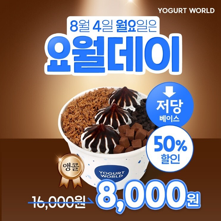 디저트카페 프랜차이즈 요거트월드가 오는 8월 4일 요월데이 할인 프로모션을 진행한다고 밝혔다.