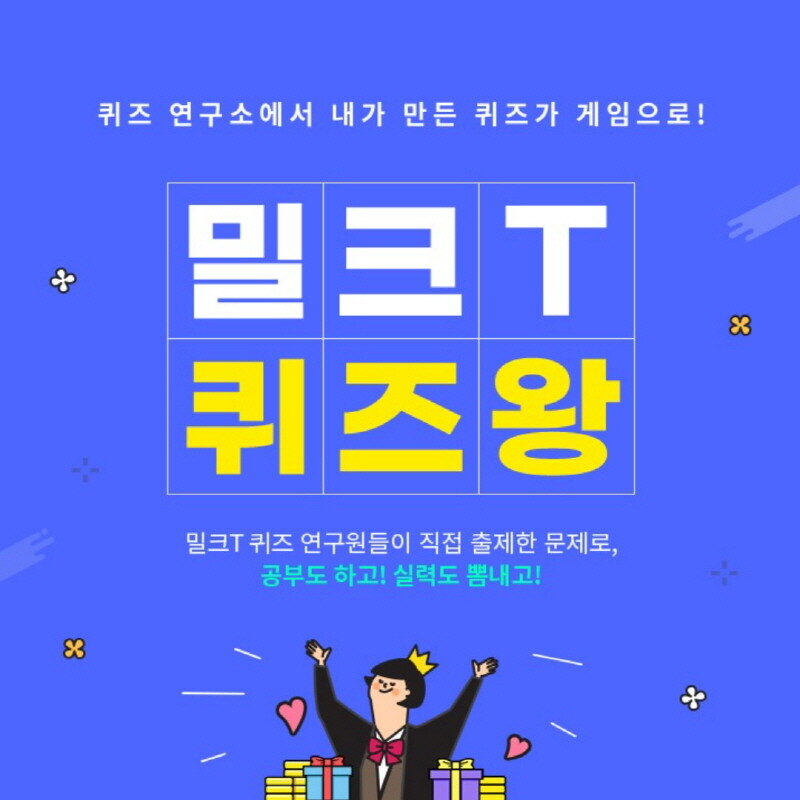 학습생들이 직접 만든 퀴즈는 승인 과정을 거쳐 문제로 출제되며, 밀크T에서는 매월 학생들의 참여를 독려하고자 ‘BEST 연구원’과 ‘BEST 퀴즈’를 선정, 모바일 상품권을 지급한다.