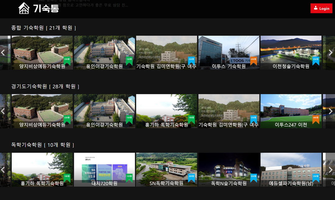기숙통은 기숙학원 비용, 기숙학원 금액, 학원비 같은 경제적 정보와 함께 학원의 교육 방식, 위치, 시설 상태 등 세부적인 데이터를 제공한다. 경기도 기숙학원, 용인 기숙학원과 같은 지역별 정보도 상세히 제공되어 학부모와 학생들이 자신에게 가장 적합한 학원을 선택할 수 있도록 돕는다.
