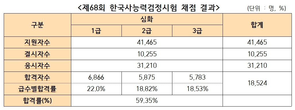 제68회 한국사능력검정시험 31,210명 응시...합격률 59.35%