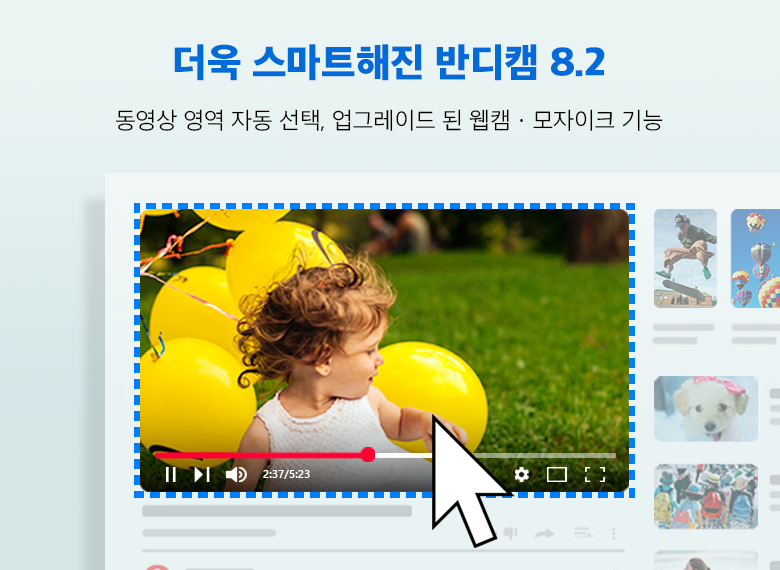 윈도우 화면 녹화 프로그램 반디캠이 8.2 버전에서 녹화 영역 선택 기능과 웹캠 오버레이·모자이크 기능을 개선하며 주요 기능을 강화했다고 6일 밝혔다.