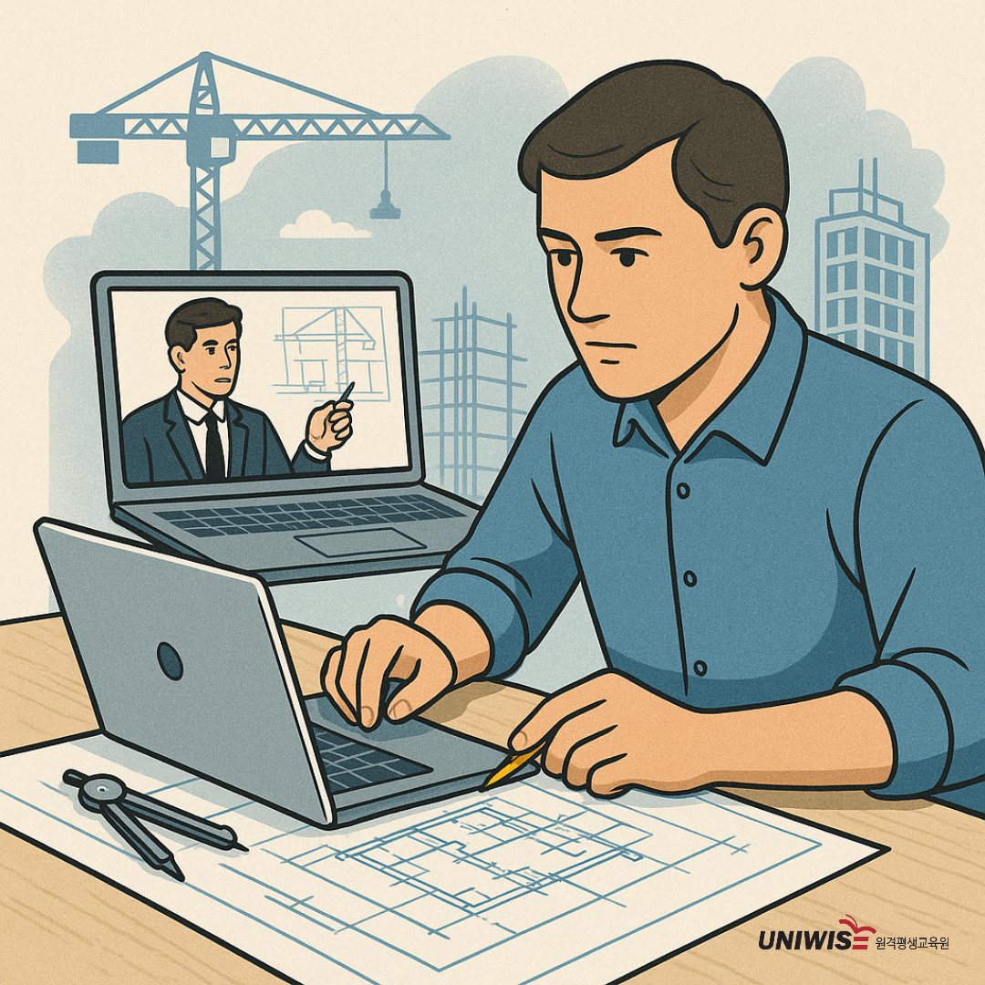 유니와이즈 원격평생교육원은 2017년 설립된 이후 공학 분야에 특화된 교육 콘텐츠를 개발·운영해 온 정규 원격평생교육기관으로 건축공학을 비롯해 기계공학, 전기공학, 토목공학 등 다양한 공학 전공 과목을 100% 온라인 강의로 제공하고 있다. 특히 PC와 모바일 환경 모두에서 수강이 가능해, 시간과 장소의 제약 없이 유연하게 학습할 수 있다는 점이 큰 장점이다.