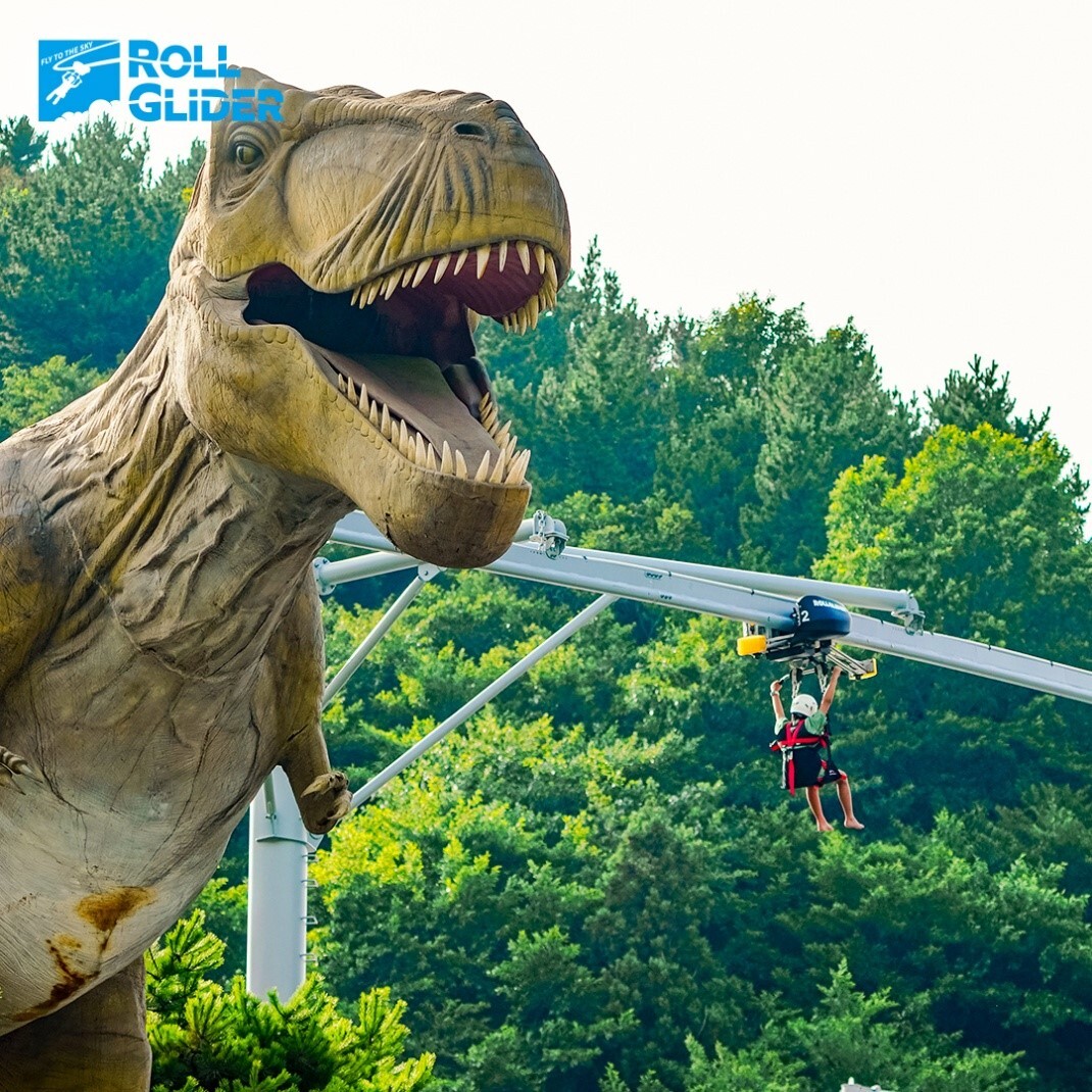 100억 원의 제작비가 투입된 유월드 롤글라이더는 해발 215m 상공에서 출발해 총 1km에 달하는 공중 트랙을 최고 시속 55km로 비행하는 플라잉 어트랙션이다. 기존 짚라인이나 짚코스터와 달리 상승 및 곡선 비행, 급하강·회오리 구간이 가능한 다이나믹한 플라잉 롤러코스터 형식으로, 세계적인 레저시설 제작사 ‘월토피아(Walltopia)’가 설계 및 설치를 맡아 안정성과 스릴을 모두 갖췄다.