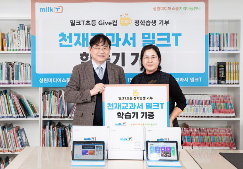 특히 밀크T 학습기 후원은 천재교과서가 매년 진행하는 기부 프로젝트 ‘밀크T Give컵’을 통해 마련됐다.
