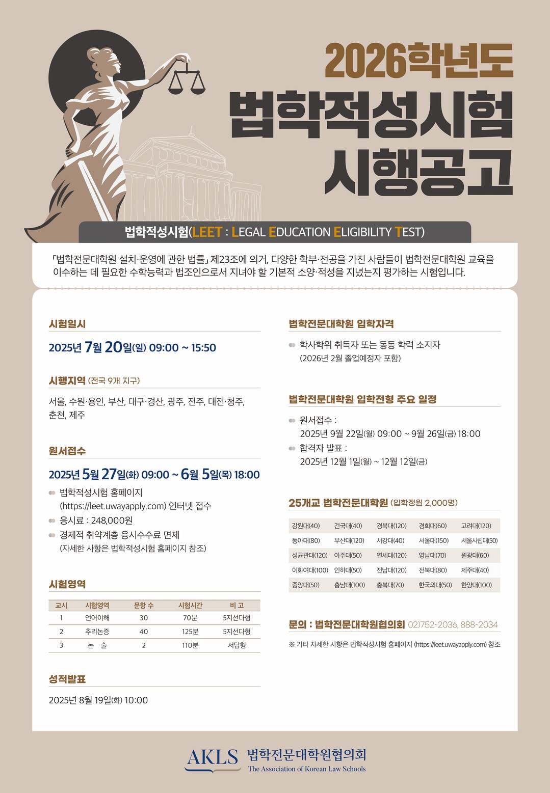 2026학년도 법학적성시험(LEET) 원서접수 27일부터 시작...7월 20일 시험 시행