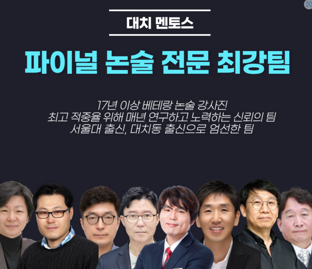 대치동 멘토스학원은 소수정예 재수학원의 원조 학원으로 23년 된 대치동에서 메가스터디 다음으로 오래된 학원이다. 이 학원에서 수능 전 논술 정규 수업과 수능 후 논술, 겨울방학 윈터스쿨을 접수 중이다.