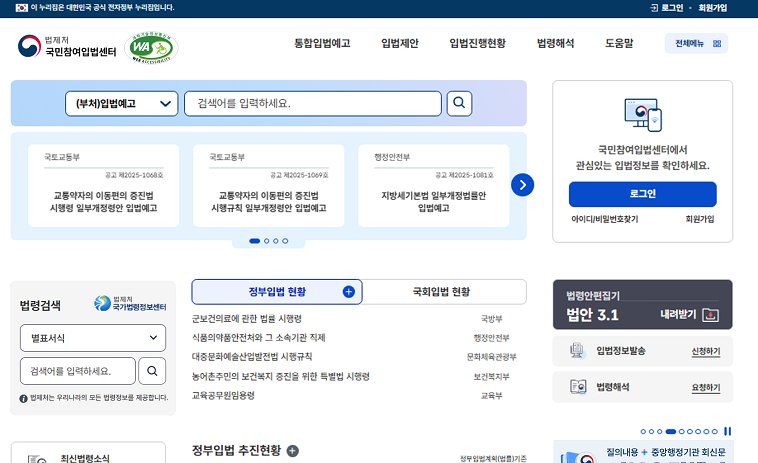 국민은 이제 하나의 통합 창구에서 입법예고 정보 검색, 의견 제출, 법령정비 의견 제시, 법령해석 사례 검색까지 입법 과정 전반의 정보를 원스톱으로 확인할 수 있다.