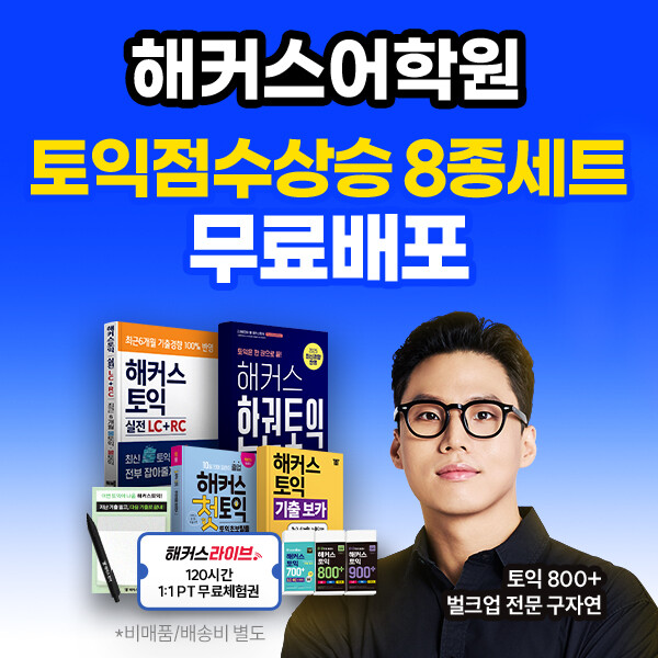 토익(TOEIC) 수험생들의 막판 점수 상승을 지원하기 위해 해커스어학원이 적중예상특강과 토익 점수상승 8종세트 무료 배포 이벤트를 준비했다.