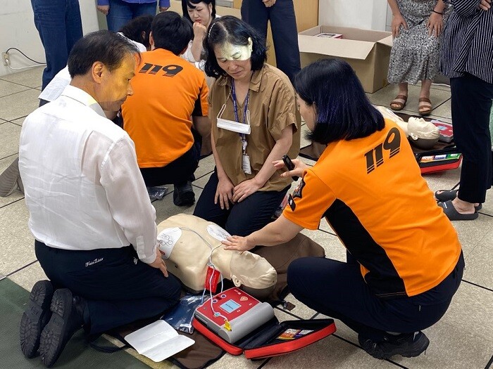 ‘대전대덕소방서’ 협조로 시행된 금번 교육은 △일상생활 응급사고 사례 △여름철 집중호우 대처요령 △심폐소생술 실습교육 등 생활안전 사고에 대한 대처법 및 지식을 학습하는 내용으로 진행되었다.