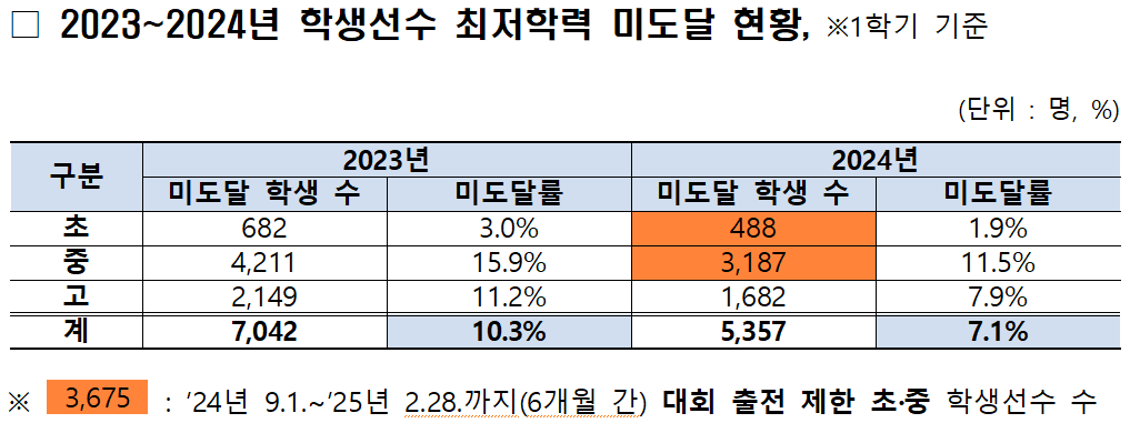 지금까지 최저학력에 미달한 고등학생 선수는 기초학력보장 프로그램을 이수하면 대회 참가가 허용되었으나, 초·중학생은 참여가 제한되어 현장에서 운동 포기 사례가 늘고 있다는 지적이 이어져 왔다.
