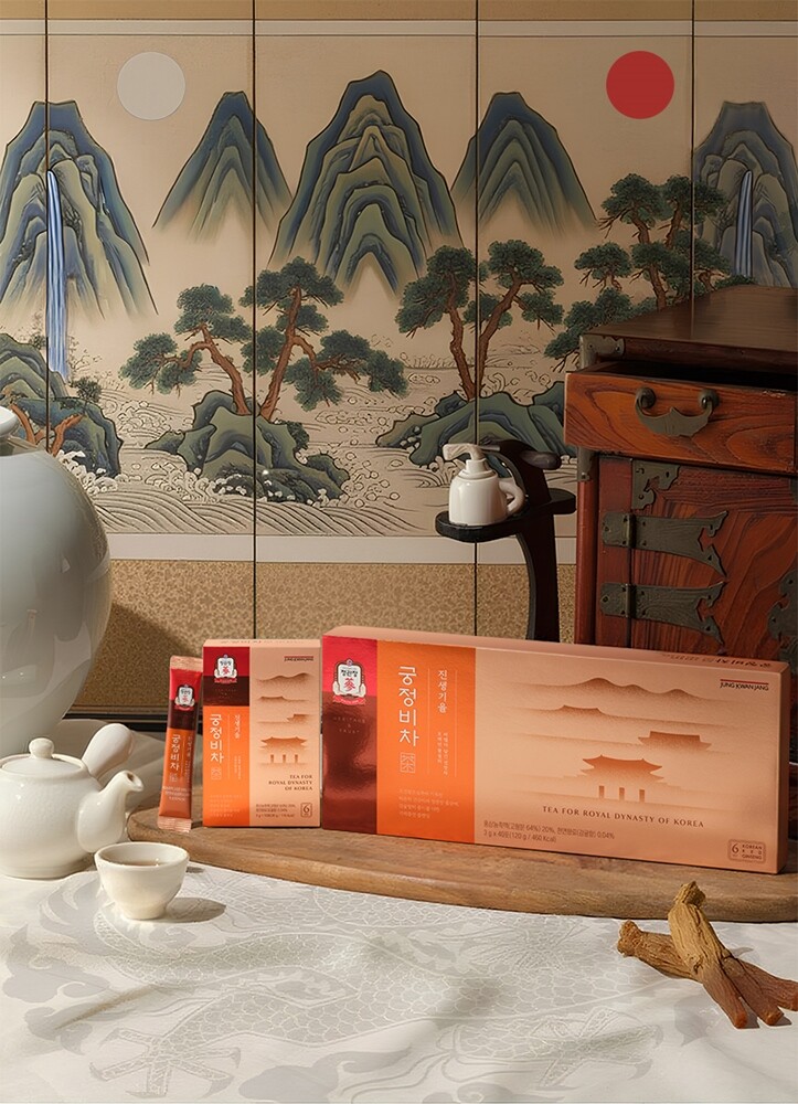 ‘정관장 궁정비차’는 500년 조선 왕실 기록을 바탕으로 전해 내려온 전통 원료와 비법을 현대적으로 재해석해 편의성을 더한 프리미엄 티 브랜드다. 실제로 『조선왕조실록』 과 『승정원일기』 등에는 임금을 위한 건강차에 관한 기록이 현재까지 남아 있어, 당시 궁중에서 차와 이를 관리하는 전문가가 중요한 역할을 했음을 보여준다.