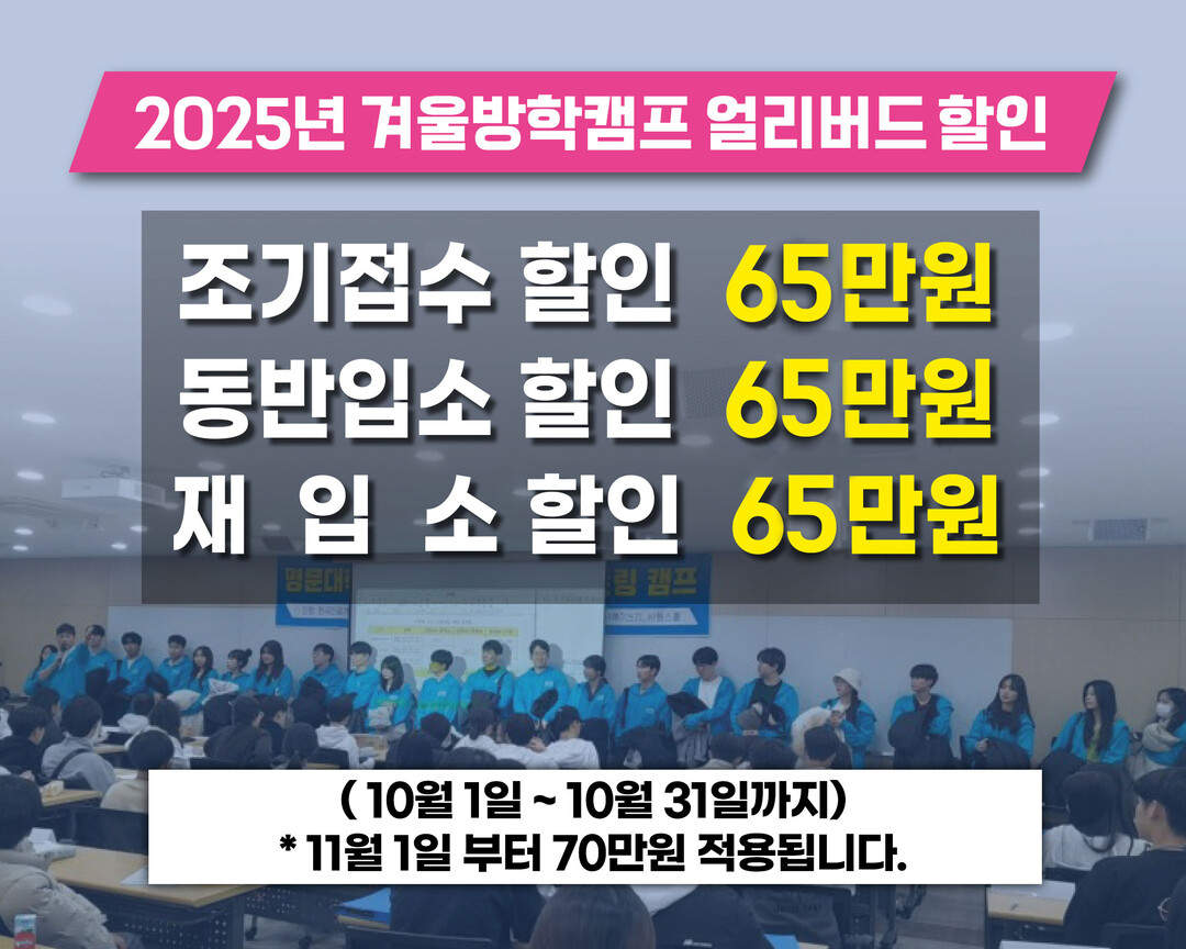 [피앤피뉴스=이수진 기자] 서울대 공신의 1:1 멘토링을 제공하는 2025 겨울방학 ‘위캔캠프’가 학부모들과 학생들의 뜨거운 호응 속에 빠르게 마감되고 있다.