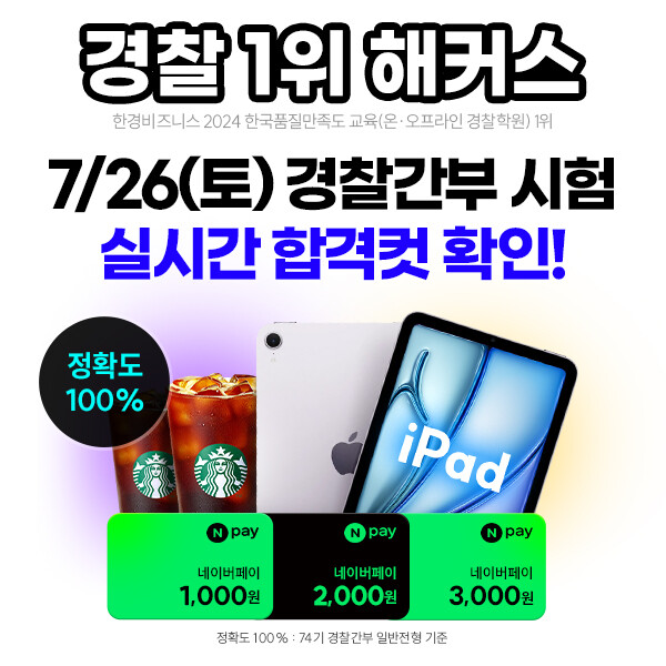 오늘(26일·토), 2025년 제75기 경찰간부 시험이 치러지는 가운데, 해커스경찰이 시험 직후 실시간 채점 및 합격예측이 가능한 ‘합격예측 풀서비스’와 다양한 이벤트를 제공한다고 밝혔다.