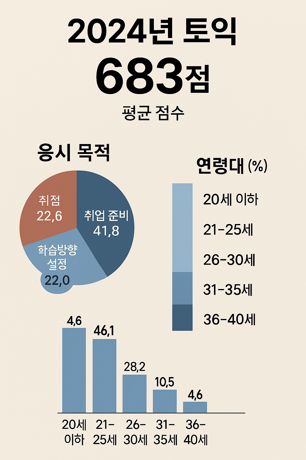 2024년 토익 평균 점수 683점…응시 목적은 ‘취업 준비’가 압도적 1위