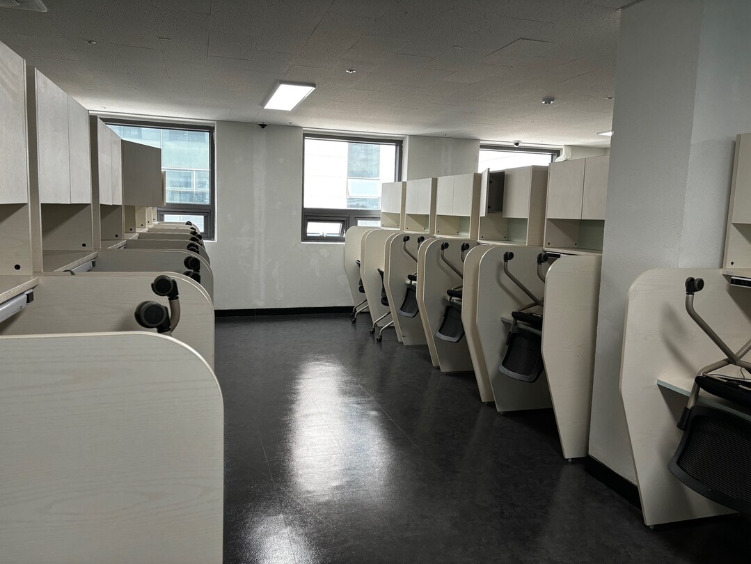각 층의 평수는 전용 75평으로 각 층은 공간 2개와 1:1 수업을 진행할 수 있는 공간 2개가 구성된다.