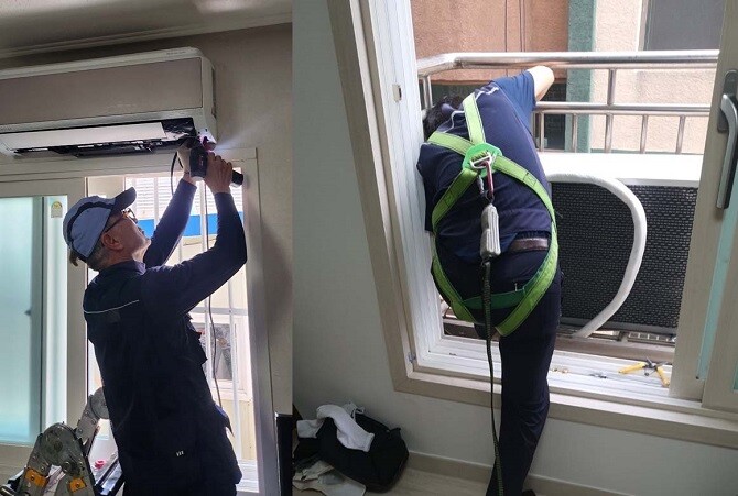 [사진 1] 복권기금 사업의 일환인 저소득층 에너지 효율 개선 지원 사업 ‘고효율 에어컨’ 설치 현장 [사진=한국에너지재단]