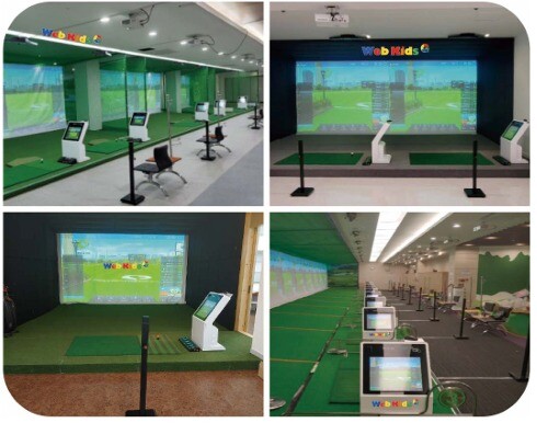 웹키즈골프영어는 유아 및 초등학교 체육교육 과정부터 성인까지 남녀노소 3세대 가족이 함께 즐길 수 있도록 구성되어있다. 주니어코스부터 시니어코스가 모두 구성되어 있으며, 국내 70여 곳의 골프장이 그래픽 시뮬레이션 코스로 조성되어 있다. 이와 함께 국내외 골프 전공자 및 골프 선수 출신의 2인 1조 전문 강사진에 의한 체계적인 골프레슨 커리큘럼으로 구성되어 있다.