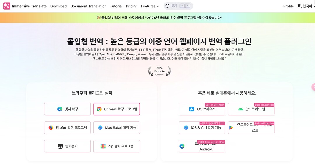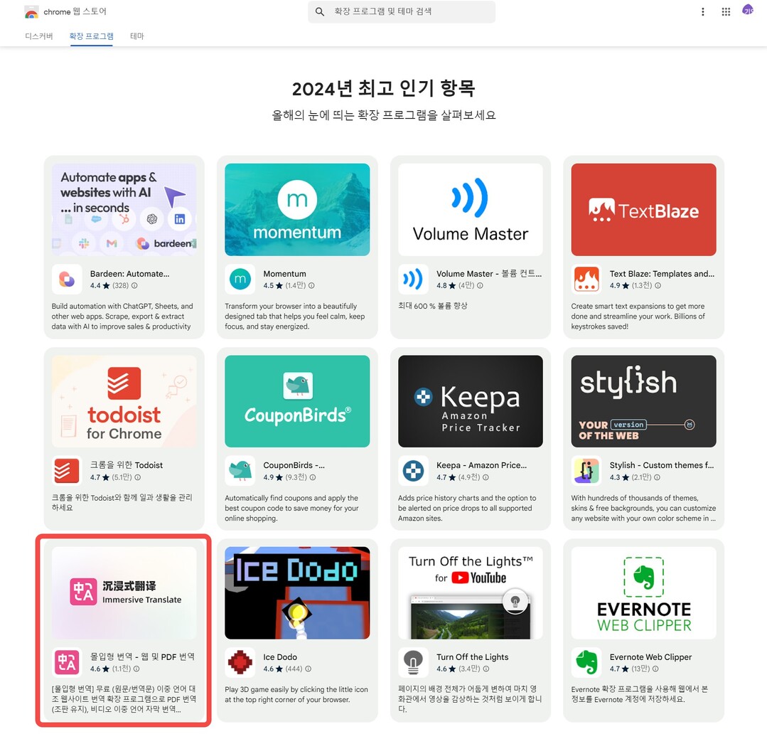몰입형 번역, 크롬 웹스토어 ‘2024년 최고 인기 항목’ 프로그램 선정